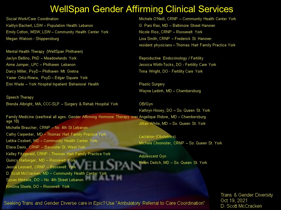 She helps Transgender people get connected to gender-affirming medical care in York County.
